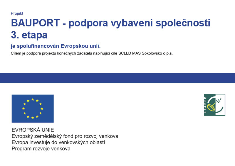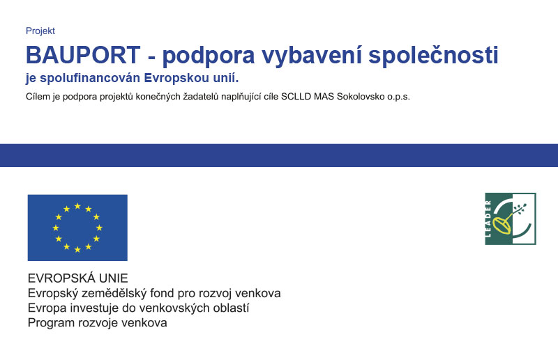 Děkujeme MAS Sokolovsko za podporu při realizaci projektu “BAUPORT - Podpora vybavení společnosti - 3. etapa”, který je spolufinancován Evropskou unií z Evropského zemědělského fondu pro rozvoj venkova na období 2014-2020